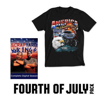 Pack includes the entire first Season of Scrapyard Kings and Our newest large overprint shirt Let Freedom Rev