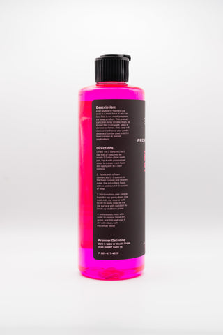 - Premier Detailing Pink Soap is a pH-neutral high-foaming car soap that is a must-have in any car line. This is our most premium car soap product. This product can clean away grease, bugs, oil, and road film from paint, glass, and chrome surfaces. This soap will clean and enhance your paint’s shine and can be used in BOTH foam cannon or bucket applications.